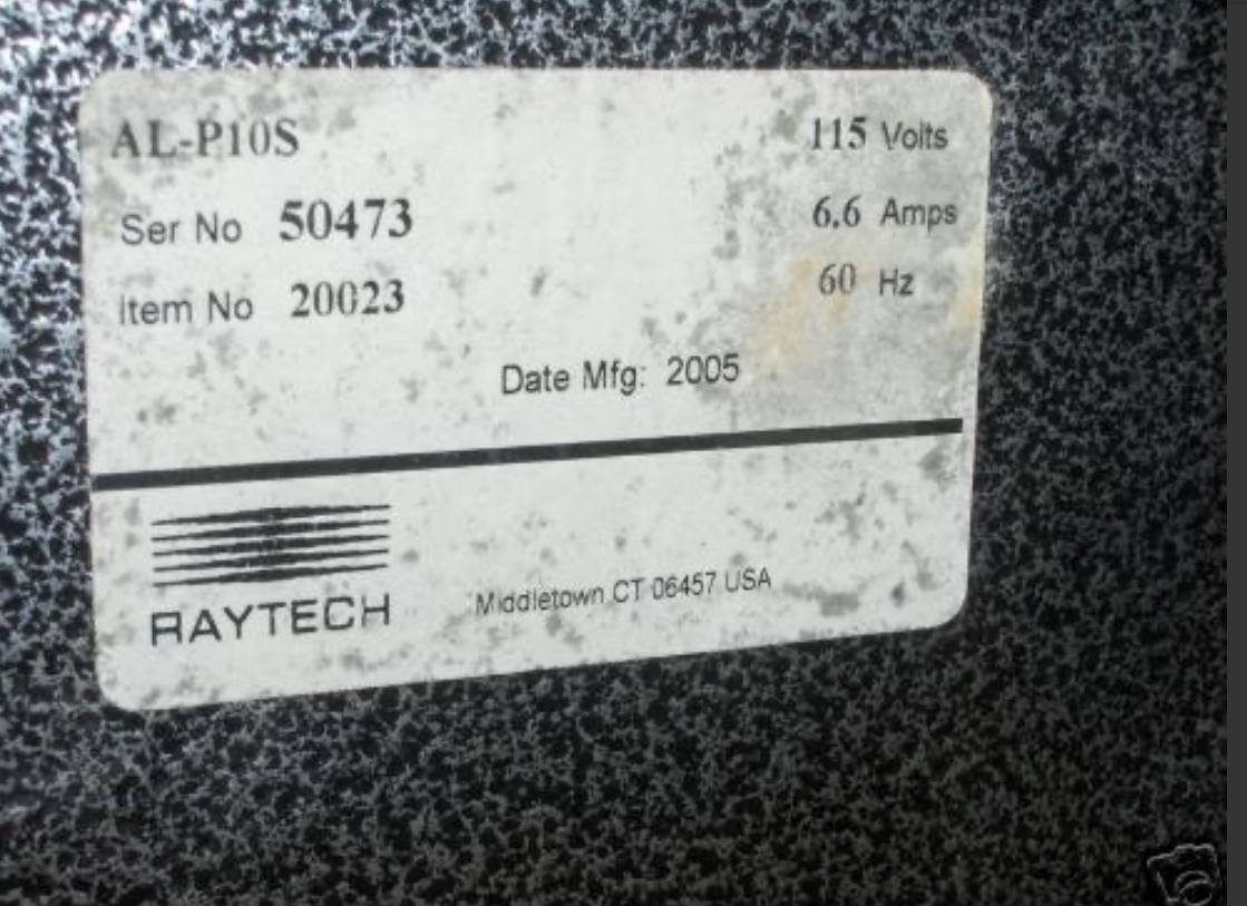 RAYTECHAL-P10S LAPIDARY SAW & TUMBLER YOU ARE BIDDING ON A USED, BUT IN GOOD CONDITION RAYTECH AL-P10S LAPIDARY SAW AND A LORTONE QT12 GEMSTONE TUMBLER. BOTH UNITS OPERATE WELL, AND FEATURE NO COSMETIC DAMAGE. THE SAW COMES WITH THE CLEAR PLASTIC COVER, CLAMPS, AND SAW BLADE ONLY. SORRY NO MANUAL (CHECK OUT THE RAYTECH WEBSITE TO GET ONE). THE TUMBLER COMES WITH THE MANUAL. THE SAW ALONE IS BEING SOLD ON THE RAYTECH WEBSITE FOR $1360.00!! PLEASE FEEL FREE TO CONTACT US WITH ANY QUESTIONS THAT YOU MAY HAVE REGARDING THIS ITEM. THANKS FOR LOOKING!