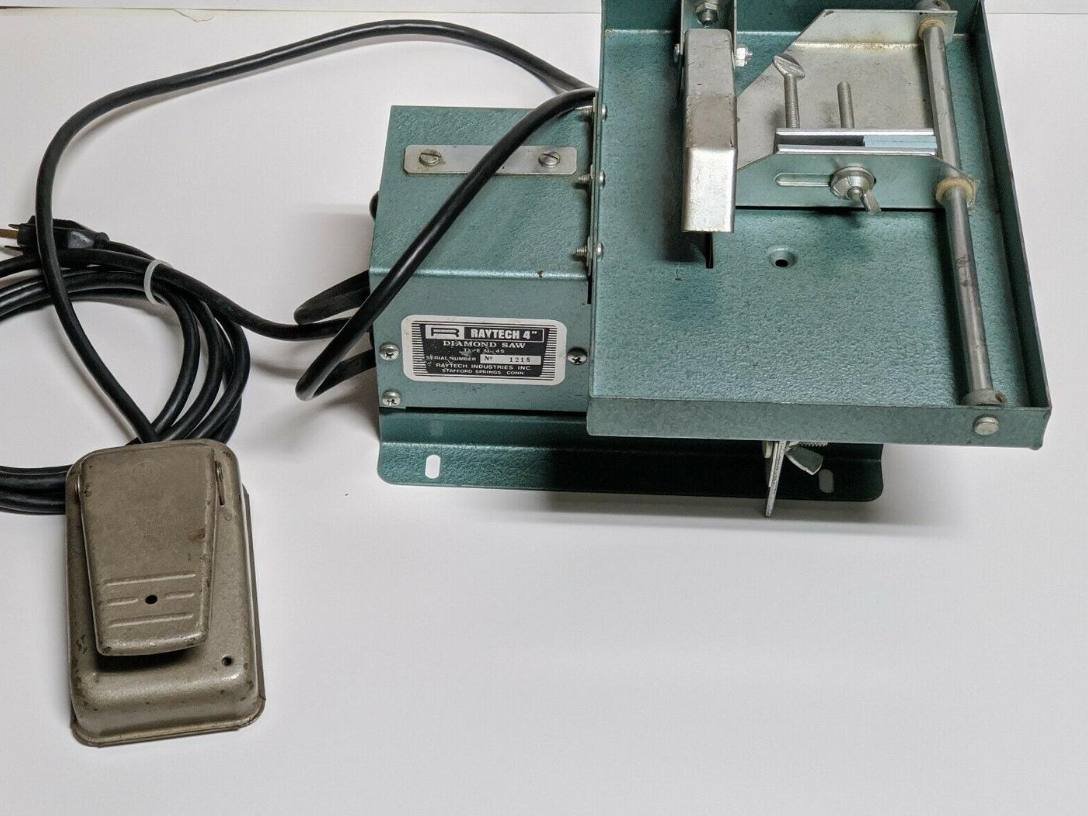 Raytech 4″ Diamond Saw machine Lapidary Stone Cutting Slabbing AL-4S Condition is Used. Has scratches, marks , some dirt , and typical signs of use and age. Tested working order. Please view the many pictures to judge overall condition.Since the saw weights 12 pounds without box and package shipping will be done by FedEx ground for cheapest price. Insurance and signature required.